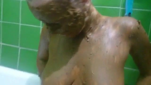 Blonde milf covered her nude body with fresh shit. She gives an amazing blowjob to her boyfriend.