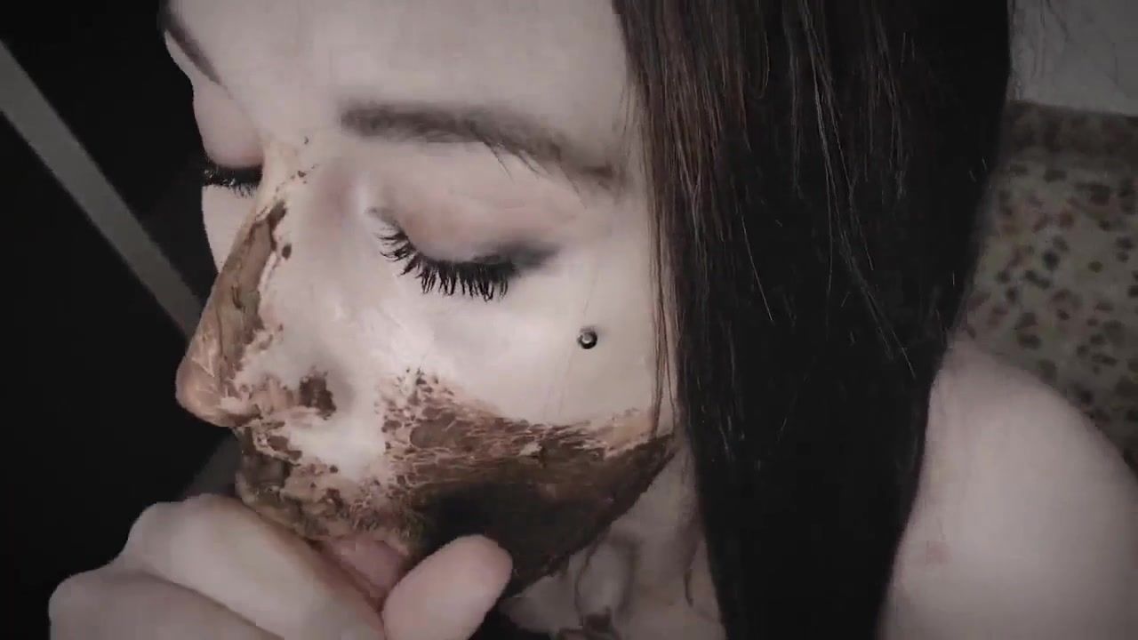 Naughty teen smears poop on her entire face. She's sucking his cock, begging for a facial.