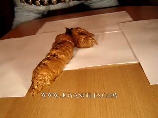 Blue jeans girl drops thick long turd