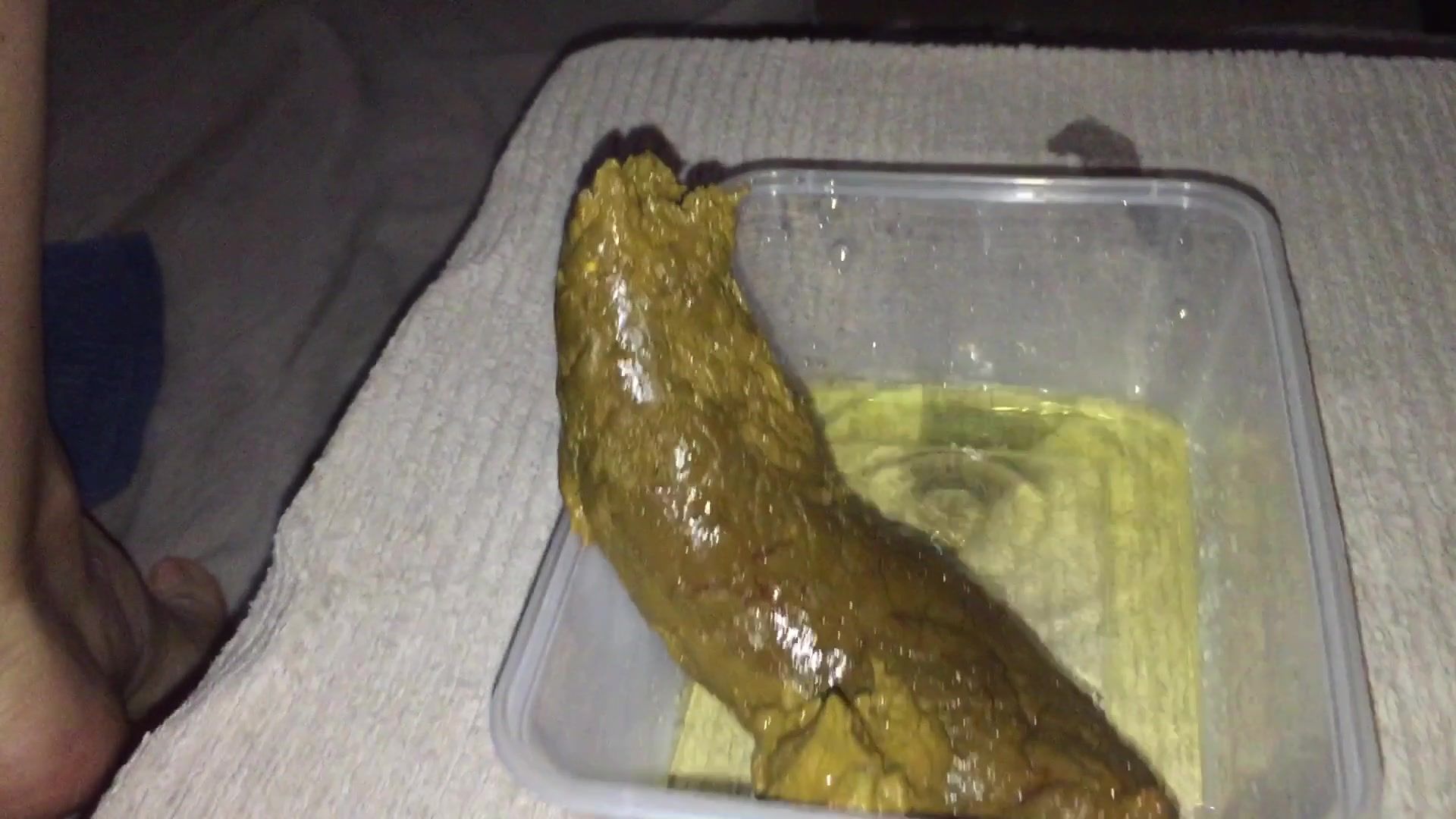 Sexy teen sits on her knees and she's pushing a big turd in a lunch box.