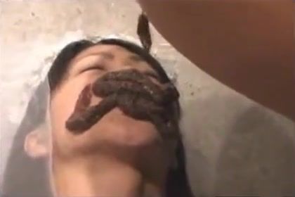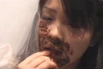 Brunette bride maid eating fresh shit before her wedding. She's was forced by her future husband to do that.