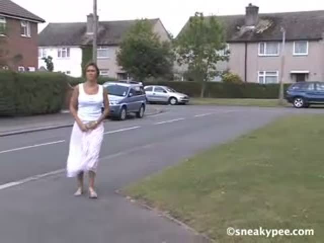 British babe decides to pee in a public place because she's to lazy to search for a public bathroom.