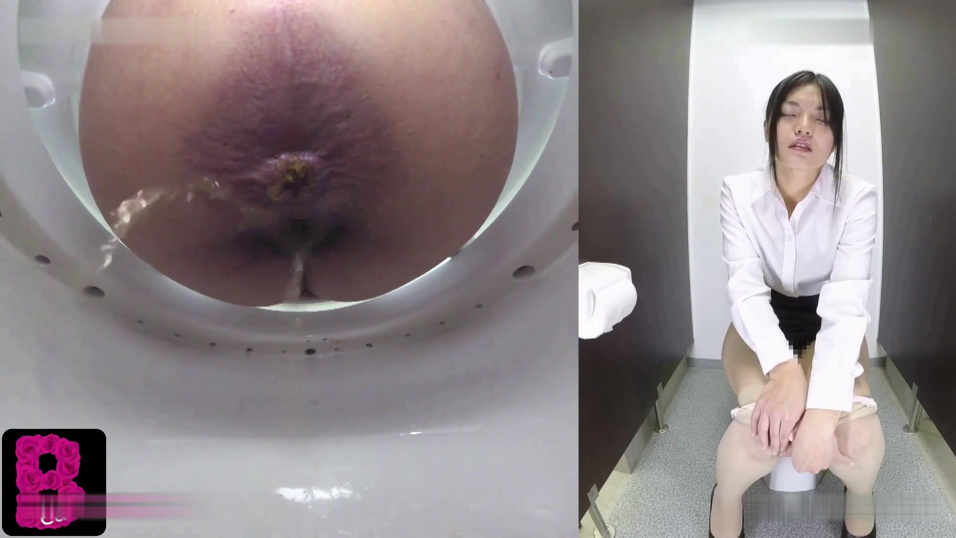 Japanese teen was caught pooping in a public bathroom. She's pushing a very long brown turd from sexy ass.