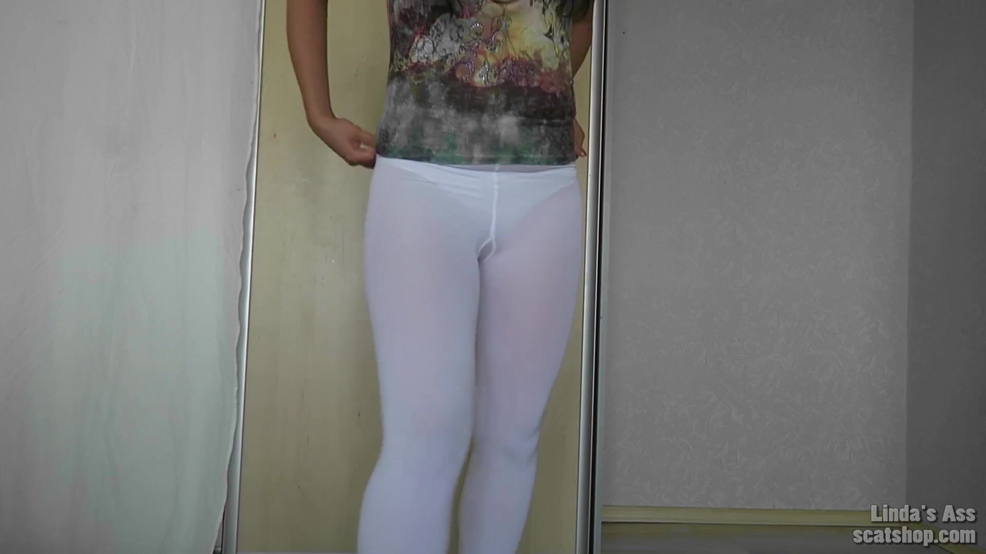 Burnette big ass lady white leggings poop
