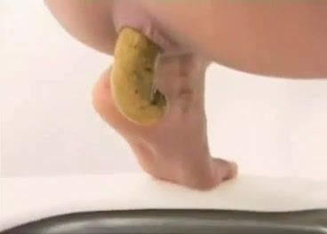 Brunette curly teen shitting on a white floor while a random photographer records her ass in close up.