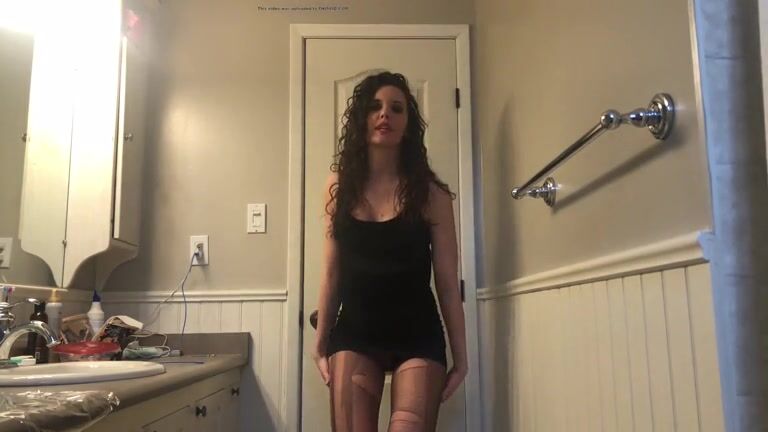 Brunette milf in sexy lingerie and stockings teasing and pooping