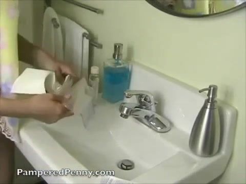 Brunette teen doing enema cause she wants to take a shit in her white diapers. She wants to smear that poop on her ass and legs.