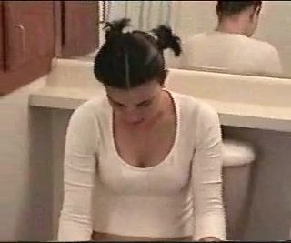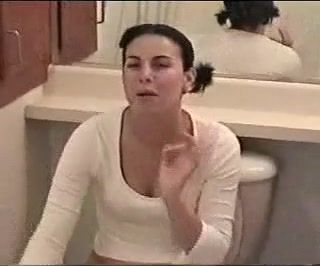 Brunette teen enjoys the smell of her fresh shit right after she finished pooping.