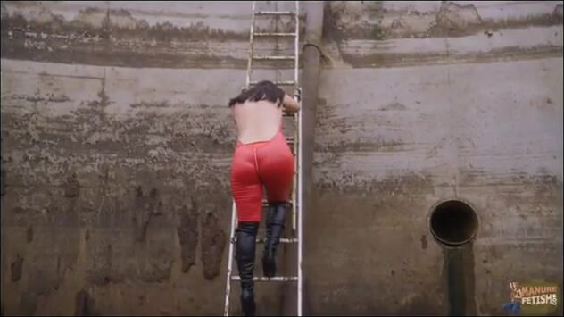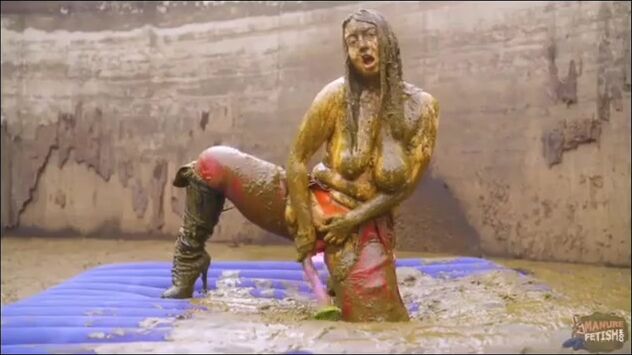 Busty babe masturbates in the manure pool