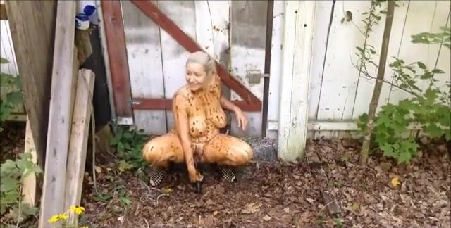 Busty British chick smearing poop outdoor