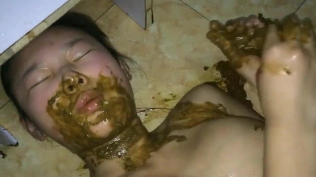 Busty brunette covered her naked body with fresh shit. She pukes a lot after eating poop.