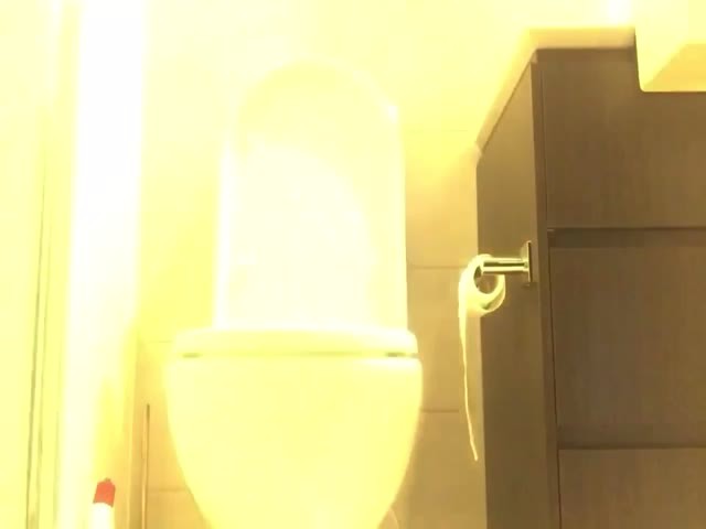 Dark haired latina is teasing us withh er sexy boobs while she's pooping in toilet.