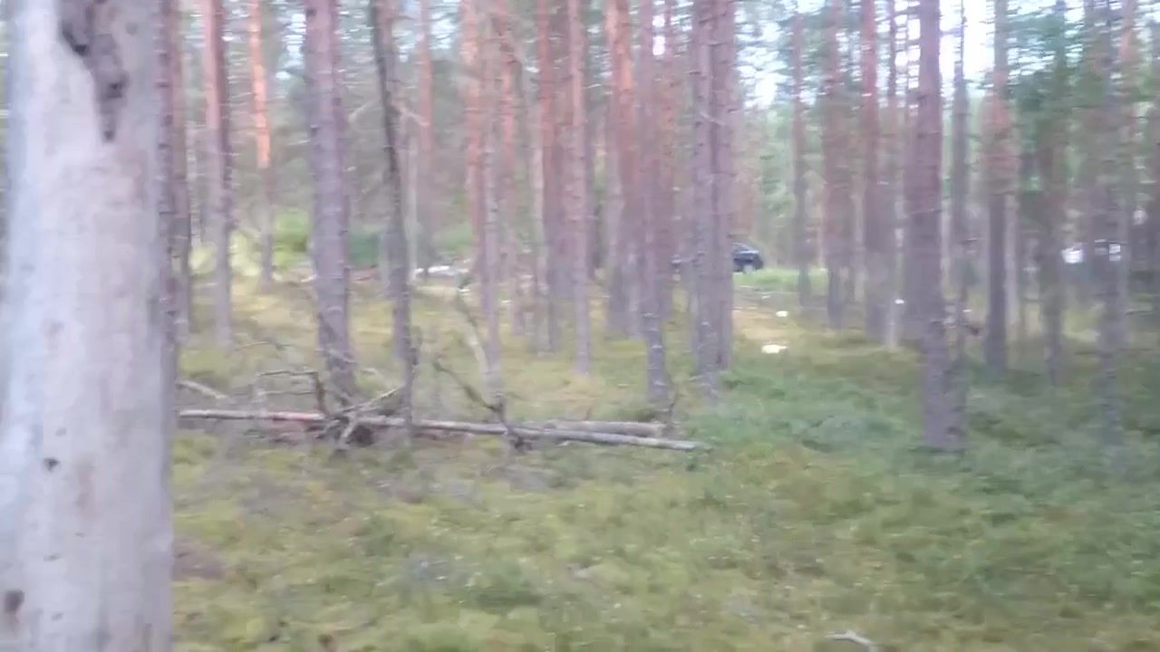 Busty blonde milf eats her own shit in the middle of a forest. Her boyfriend is watching and jerking off.