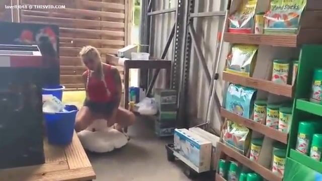 Cheeky blonde milf poops in the pet store