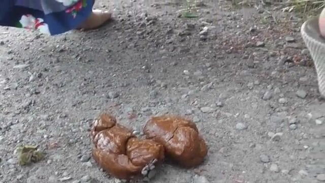 Girls pooping outdoor