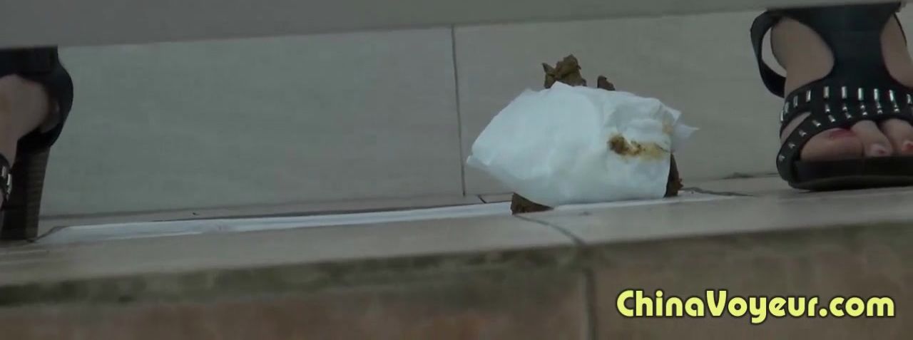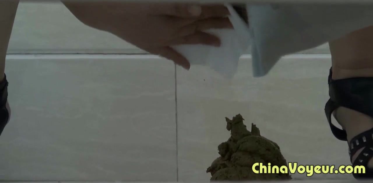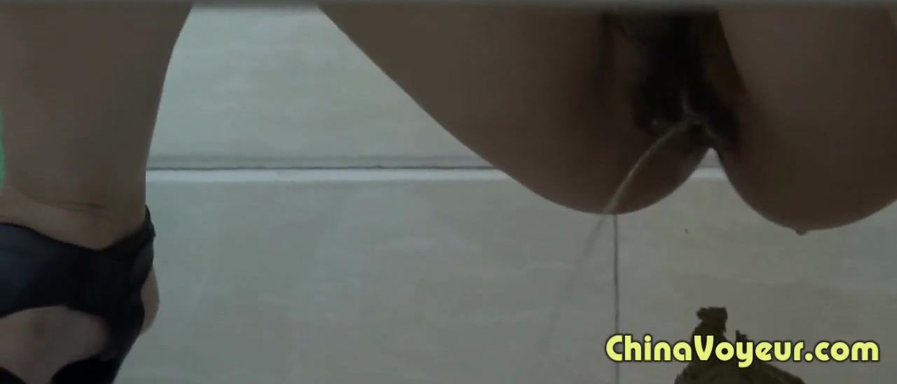 Chinese girl shits a lot in a public bathroom. Someone is using a hidden camera to spy on her.