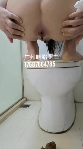 Chinese lady poops in toilet
