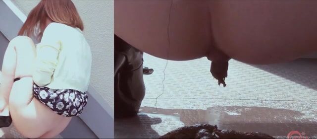 Chubby ass Japanese babe dropping shit outdoor