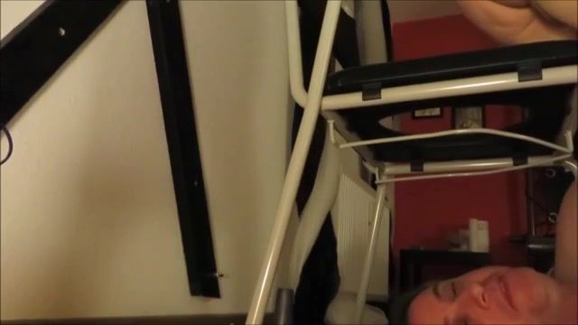 Chubby babe sits naked on a homemade toilet as she's feeding an old dude with fresh shit.