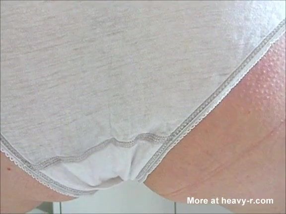 Chubby babe dropped a big pile of shit in white panties. She masturbates with poop until reaching climax.