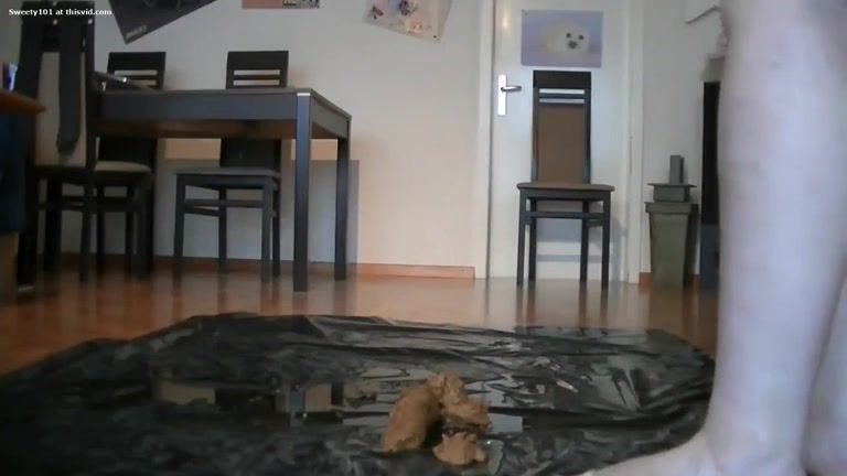 Chubby babe shits on plastic bag