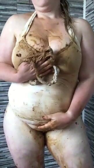 Chubby bbw lady smearing shit