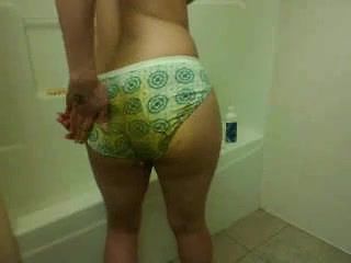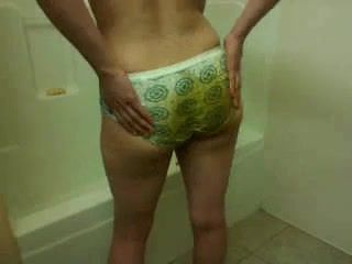 Chubby Brazilian teen pooping in her panties. She sits half naked in bathroom while her boyfriend records everything in close up.