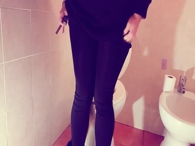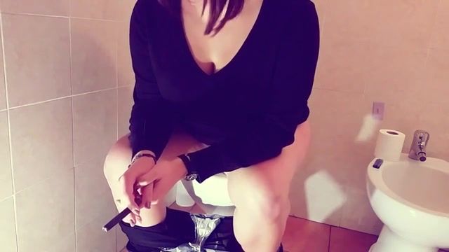 Chubby girl made her first scat video. She sits half naked on the toilet while pooping.