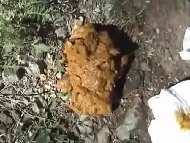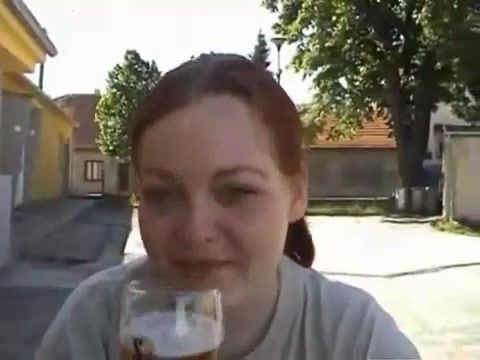 Chubby redhead is pooping in nature, outdoor. She drank one beer before that, for courage.