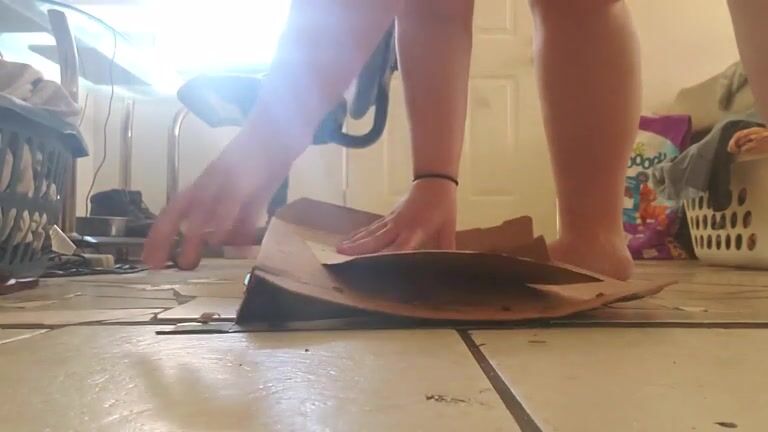 Chubby girl shits into a pizza box