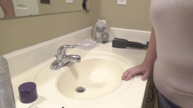 Chubby hot housewife shits in sink