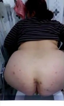 Chubby latina slaps her ass hard and she's pooping a big one in the toilet.