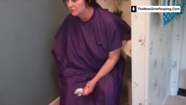 Chubby milf undressed slowly in bathroom as she's pooping in toilet. She wiped her dirty ass and left like nothing happened.