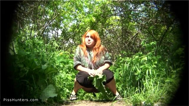 Chubby redhead went to poop outdoor on the ground cause she couldn't find a public bathroom in time.