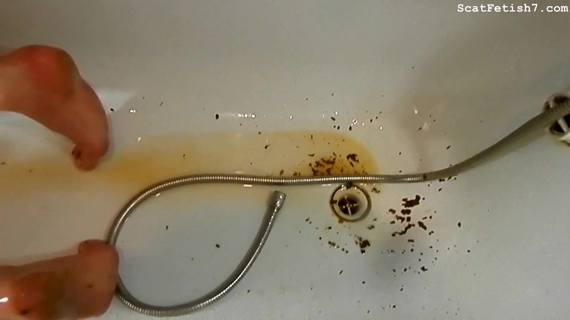 Chubby babe takes a warm shower and she wants to clean her dirty body. She just finished masturbating with poop.
