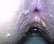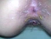 Real close up of a shaved wife that's pooping in the toilet. Her younger boyfriend records everything in close up.