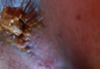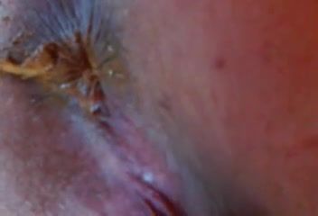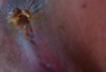 Close up of sexy teen that's pooping a small turd on bedroom floor. She records her shaved butthole in close up.
