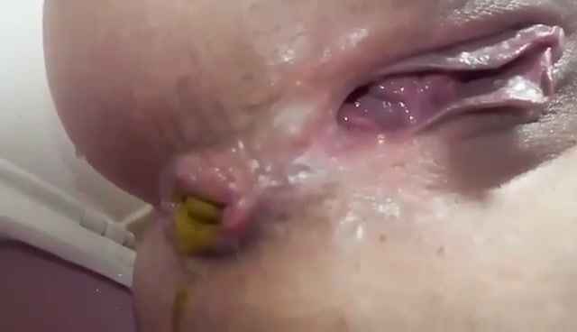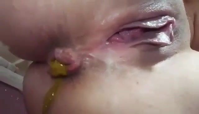 Sexy close up of a sexy teen that's pooping and peeing on bathroom floor.