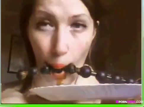 College teen eats fresh poop from a black butt plug. She loves masturbating.