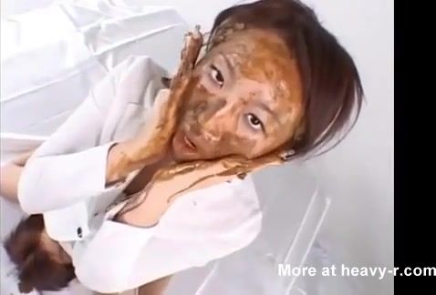 Japanese teen covered her pretty face with brown shit. She almost puked while eating poop.