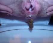 Creampied wife lets her husband to record her pussy in close up while she's peeing and pooping.