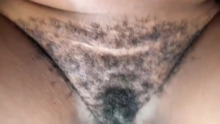Curvy ebony hairy lady has to push very hard