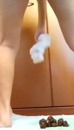 Cute Asian chick pooping small turds