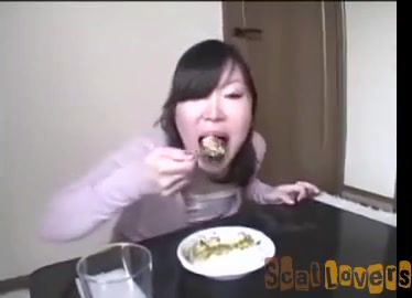 Cute asian eats her own shit