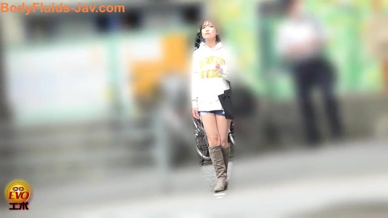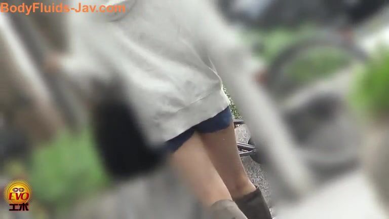 Cute Japanese babe in high boots caught pooping