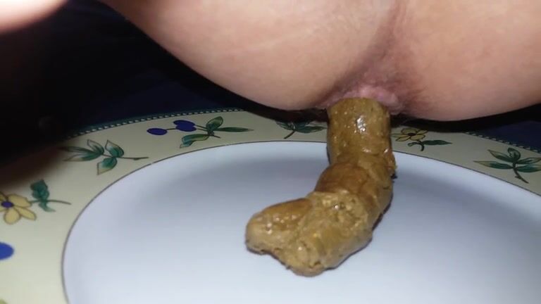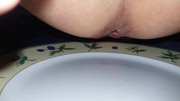 Cute round ass lady pooping in the bowl