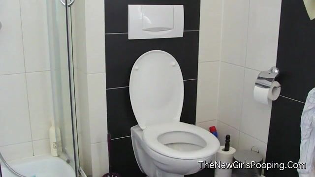 Cute skinny teen poops at home