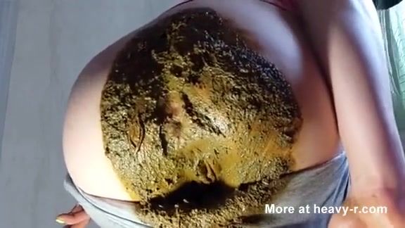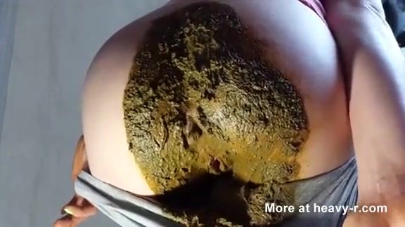 Dark haired babe smears fresh shit on her amazing ass after she finished pooping in panties.
