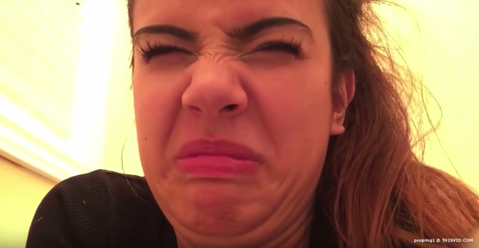Dark haired college babe spreads her butt cheeks wide opened and she shits a lot over toilet.