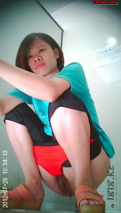 Dark haired teen shits a lot over toilet. She slaps her ass hard and she didn't wipe her ass.